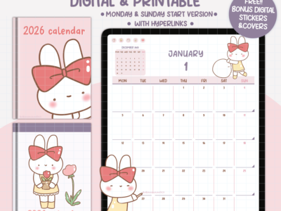 Digital 2026 Calendar & Weekly Planner Monthly Planner | PDF| Organizer| Notepaper
