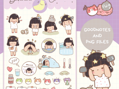 Migraine Digital Stickers | Precropped PNGs | Goodnotes Planner Sticker Book