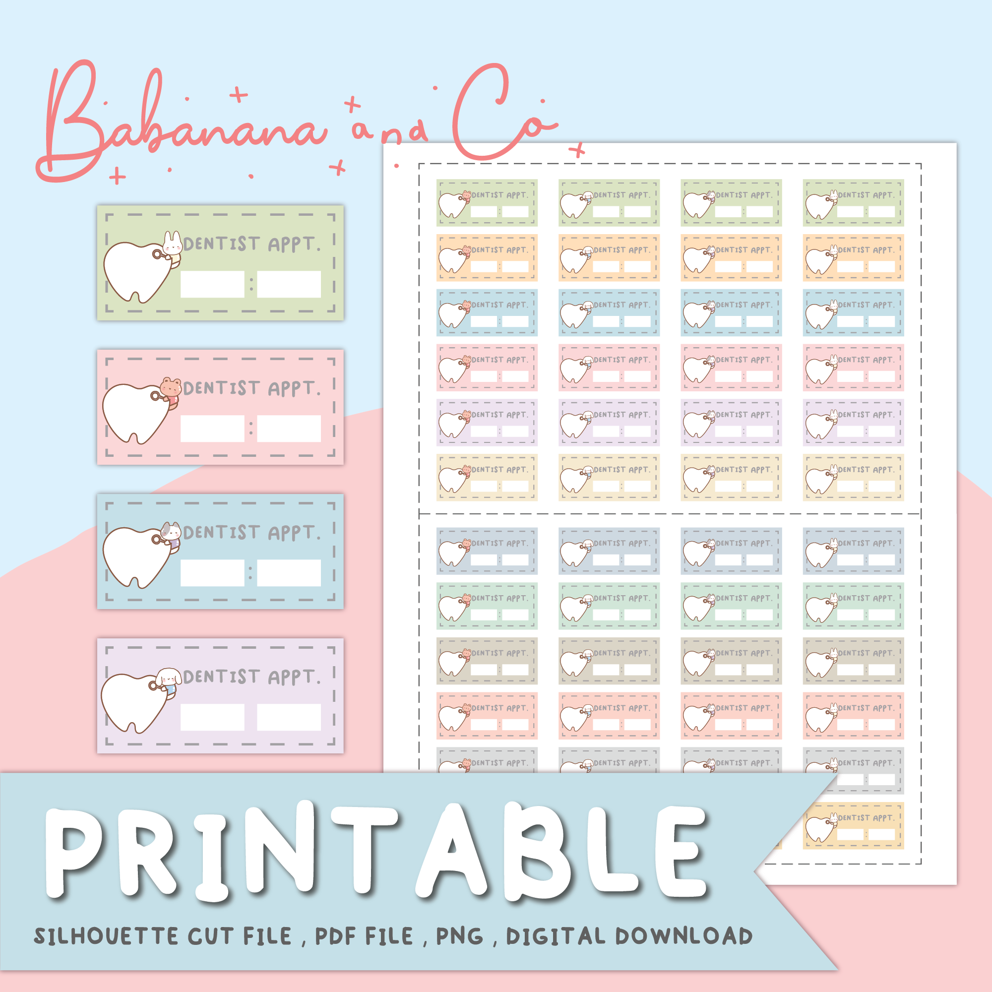Dentist appt Printable ,Digital Stickers,Hand Drawn Design,Printable Stickers,Silhouette Cut File,High Quality – Instant Download