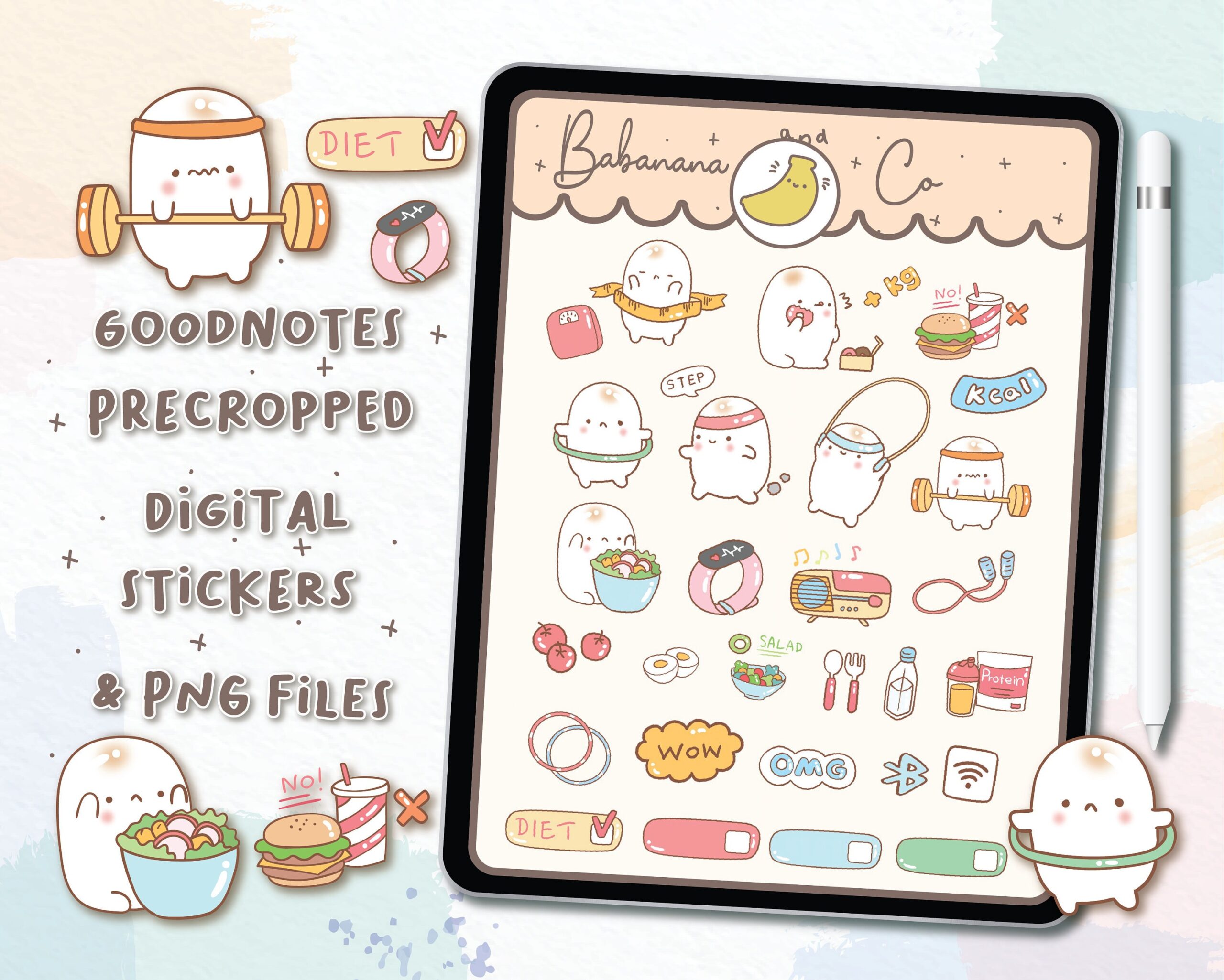 Let’s Workout digital stickers , Goodnotes Stickers , Cute Hand Draw , self care , precropped png