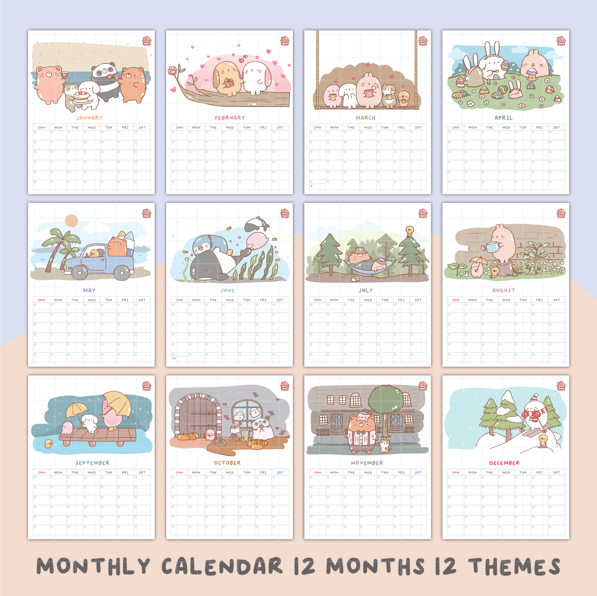 * Cute, Hand-Drawn Illustrations – Add a touch of charm to each month.