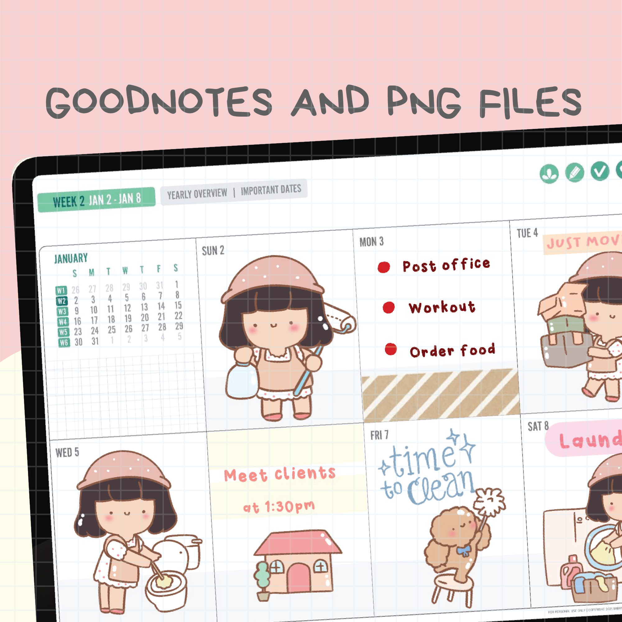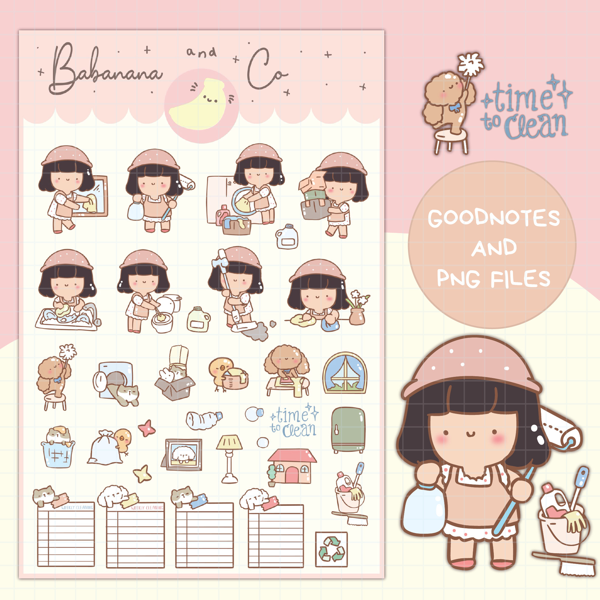 Time to clean digital stickers | Goodnotes Stickers | Cute Hand Draw | download| planner | kawaii | precropped png